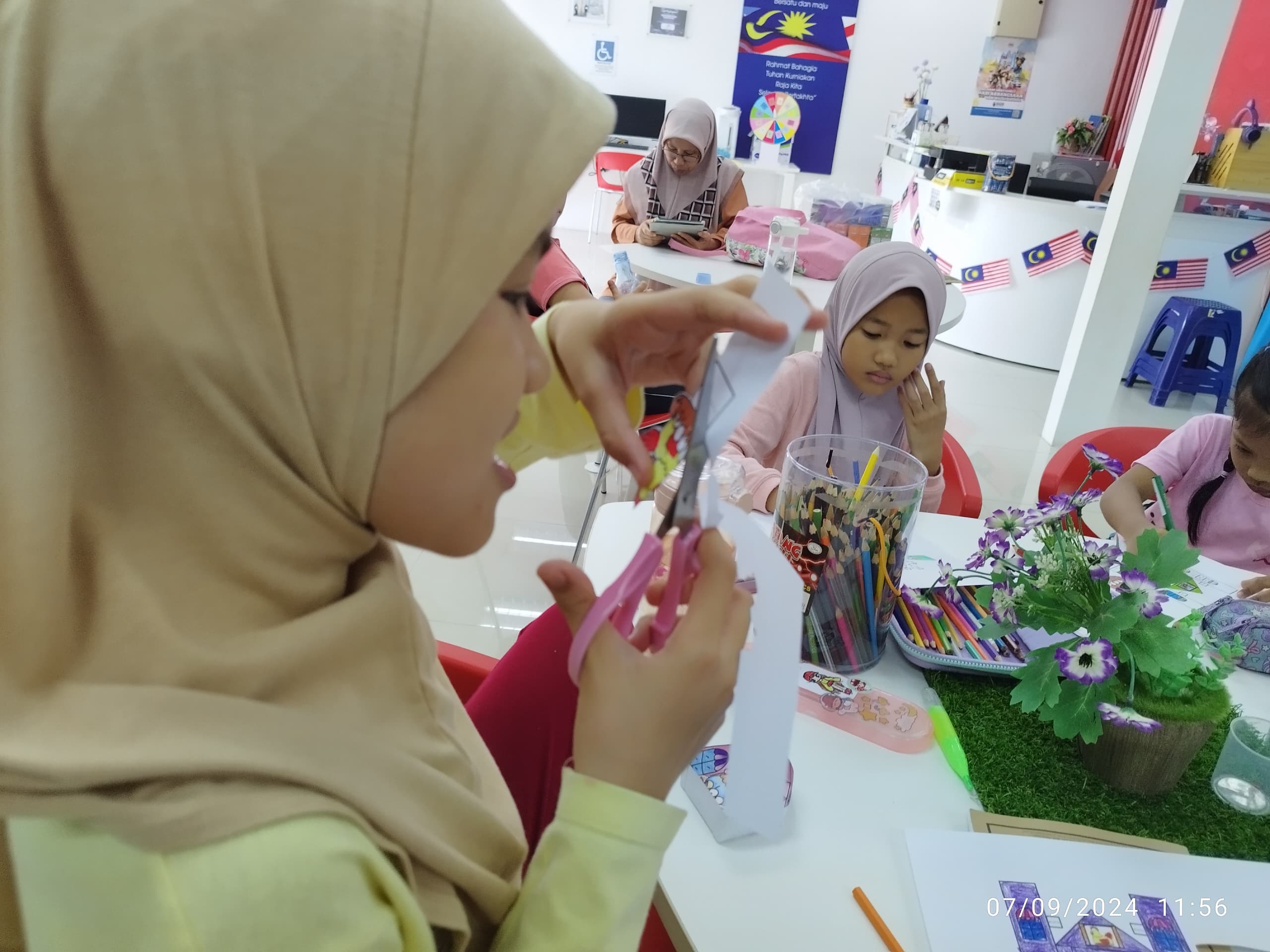 Memperkukuhkan Kemahiran Motor Halus pelajar melalui aktiviti memotong, melekat, dan mewarna.