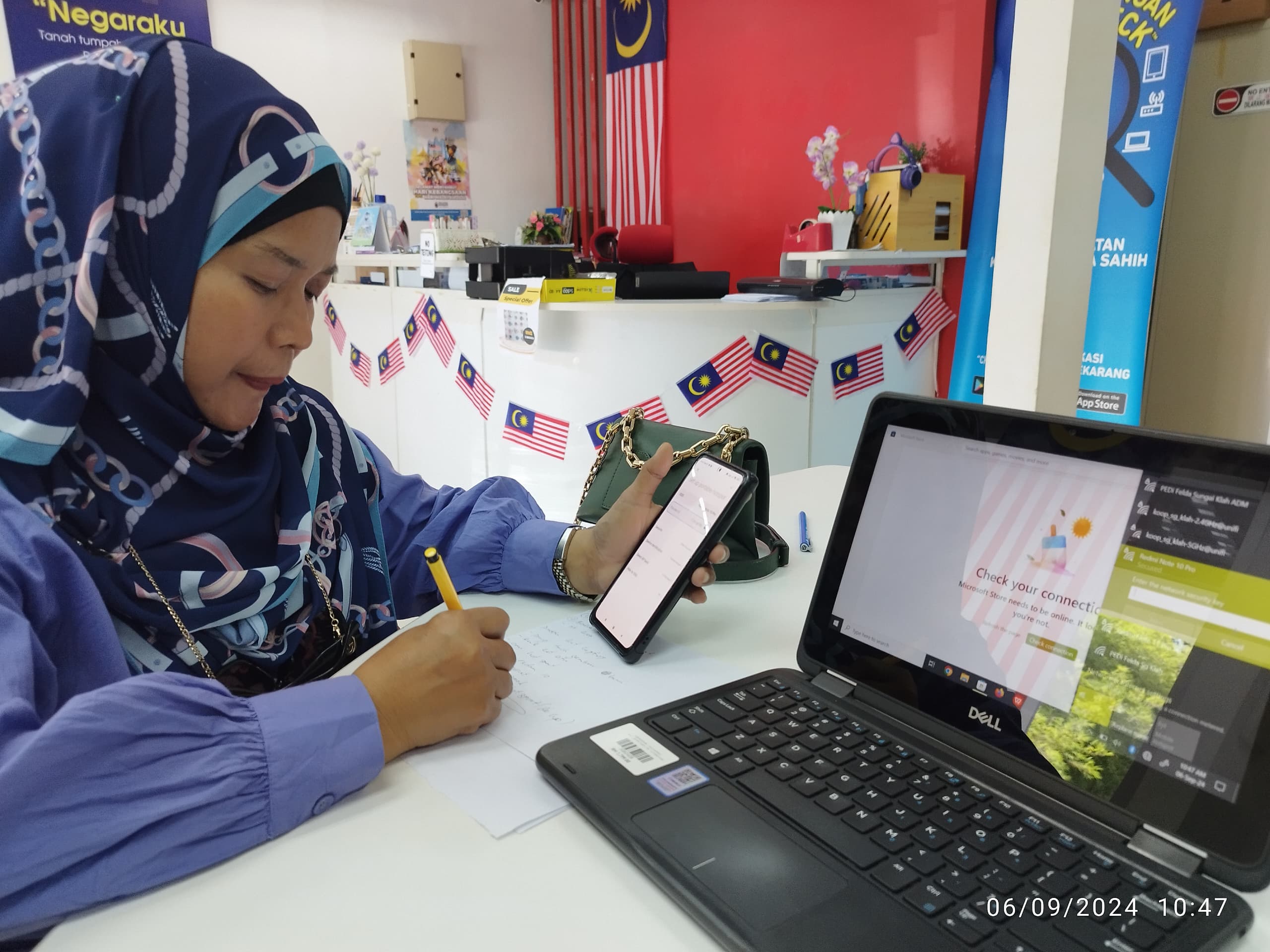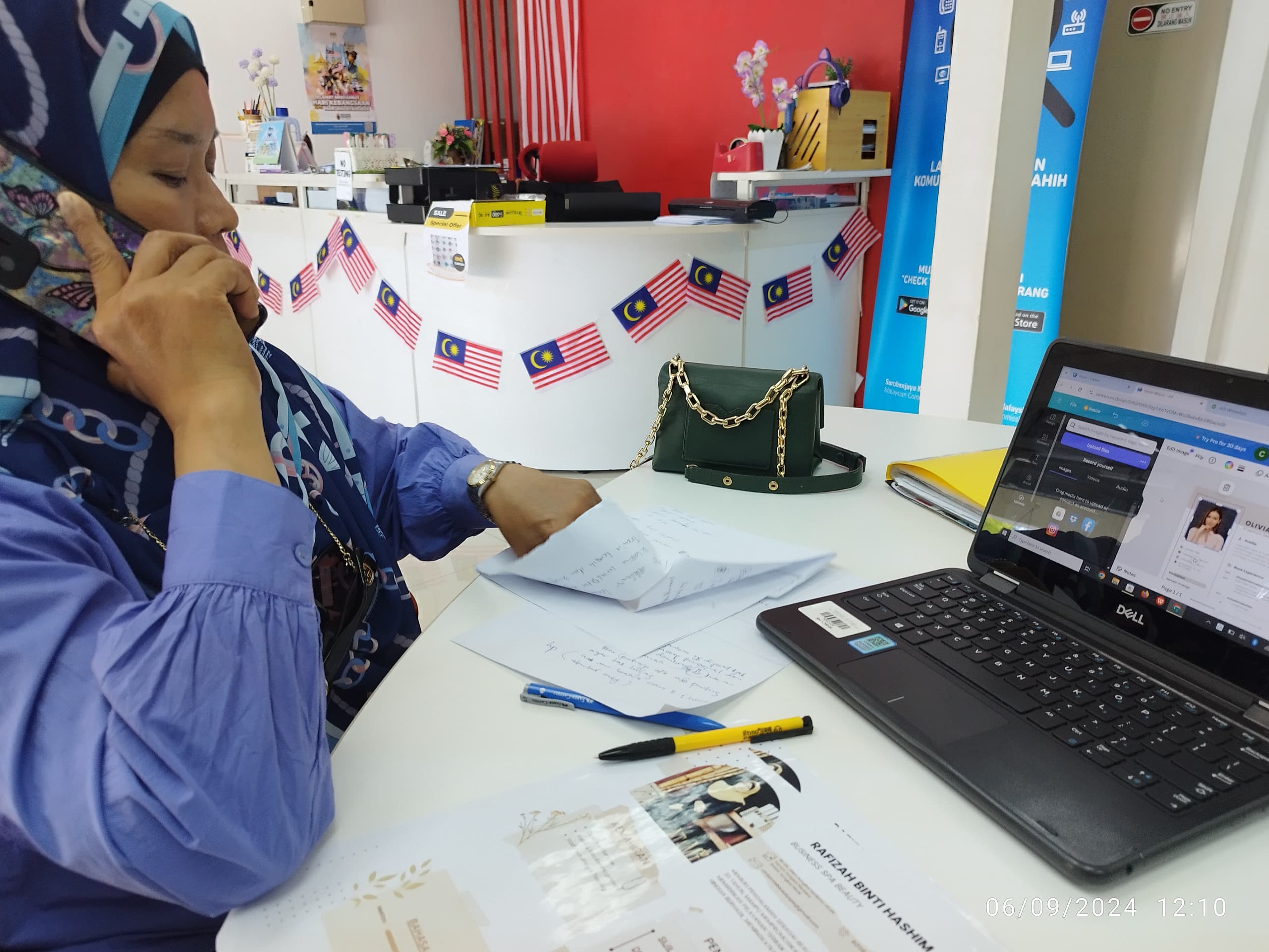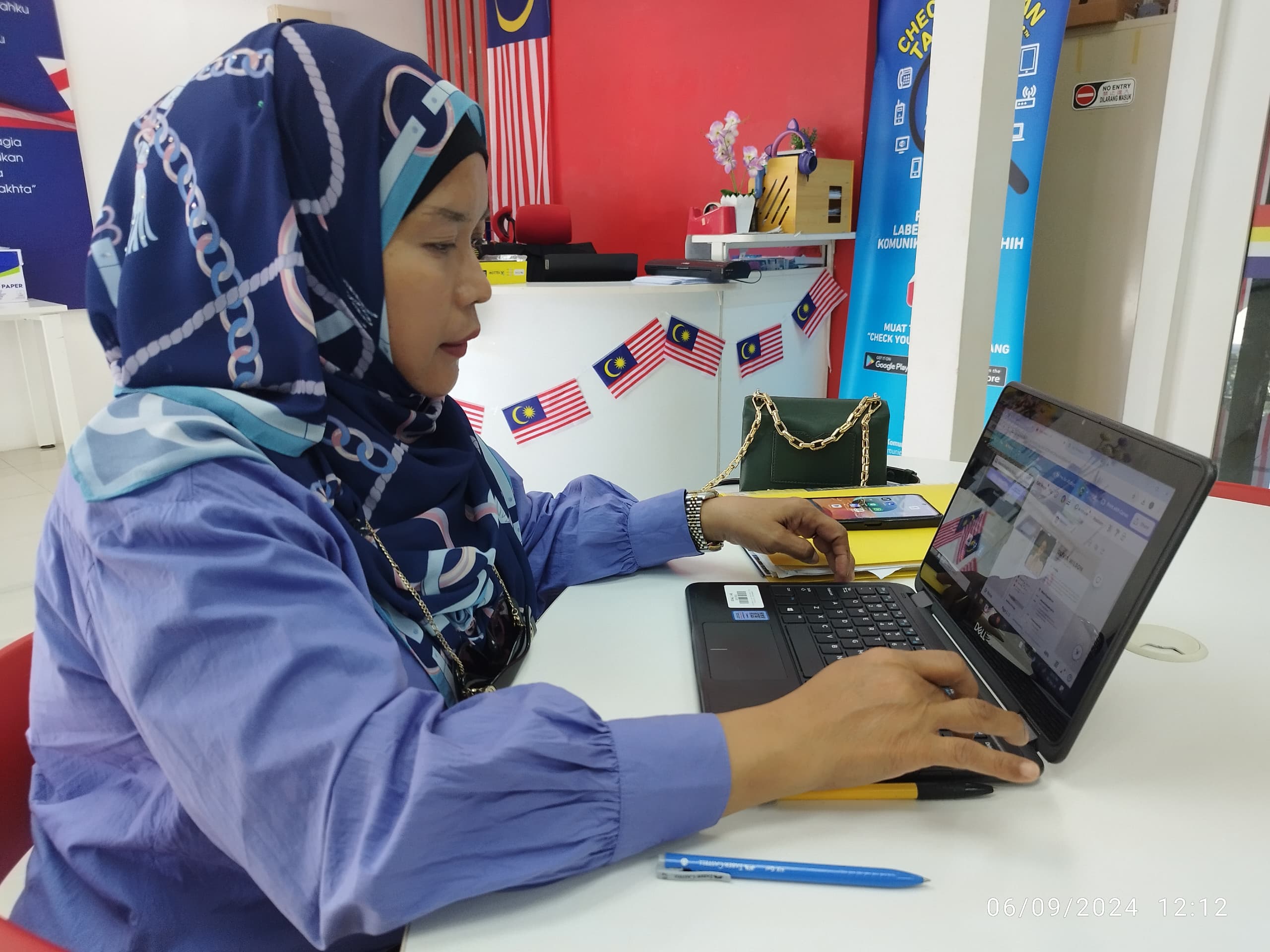Membantu usahawan belajar cara pengendalian komputer riba dan penggunaan whatsapp web untuk perniagaannya.