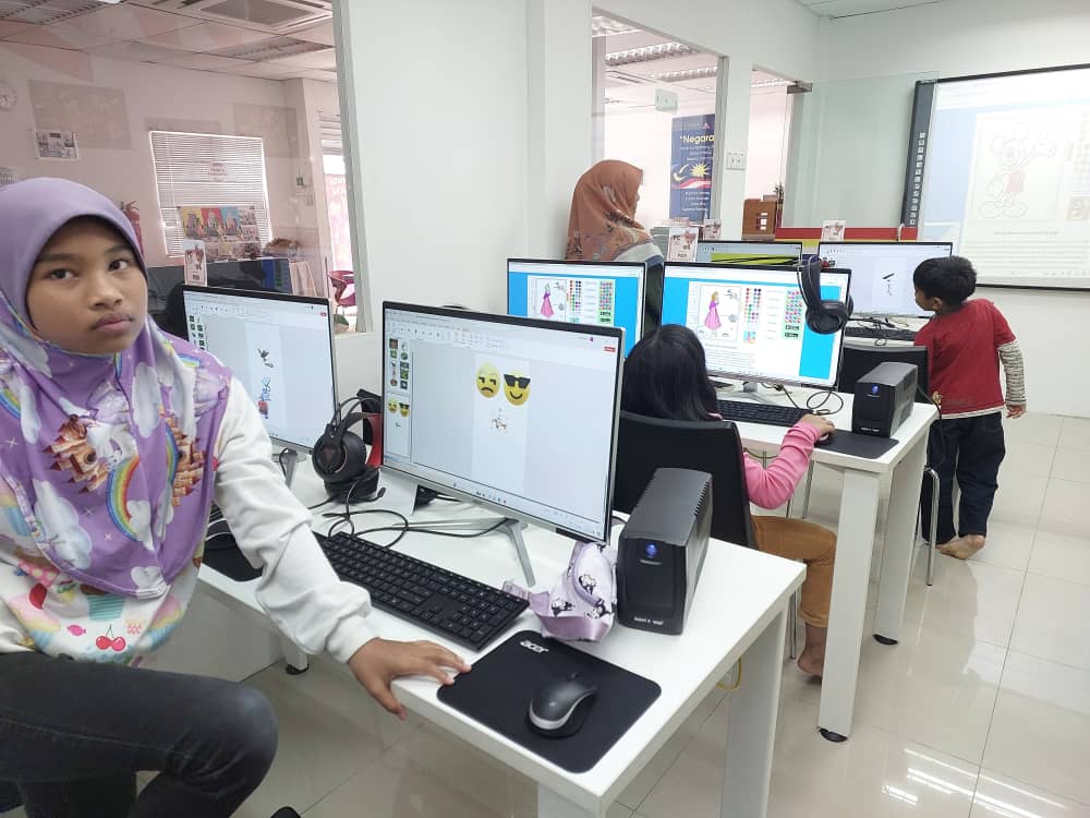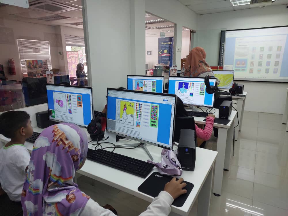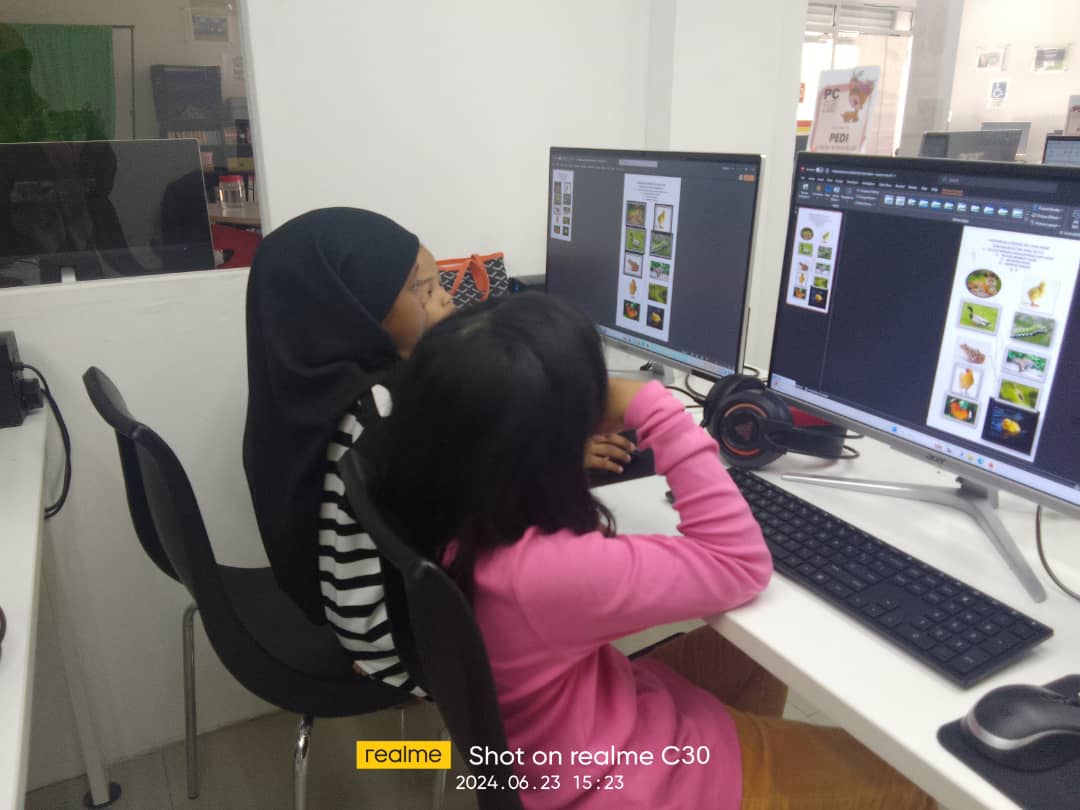 Microsoft Powerpoint – Kanak-kanak belajar menanda menggunakan anak panah & mewarna anak panah.