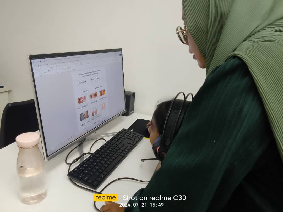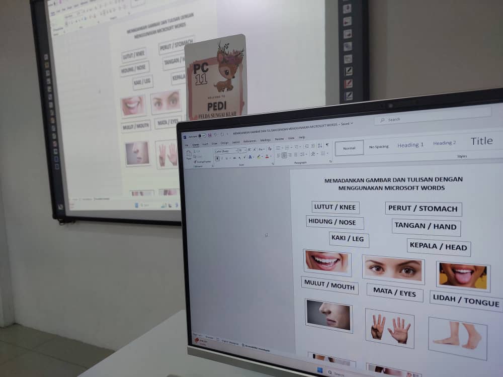 Pelajar mempelajari cara menyusun perkataan pada gambar yang betul.