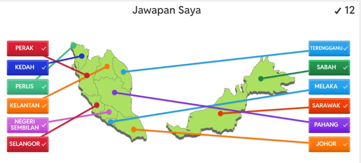 Membantu pelajar mengenali sempadan negeri-negeri di Malaysia secara interaktif.